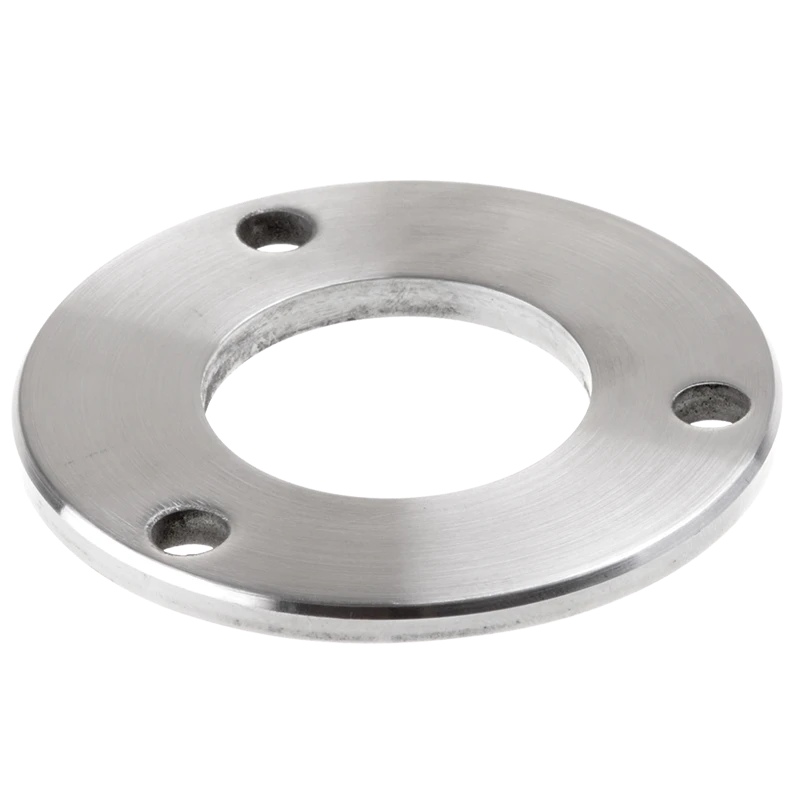 La base constituye el fundamento de cada construcción de barandilla — es responsable de transmitir las cargas y la estabilidad de todo el poste. Tres orificios de montaje permiten la fijación adicional al soporte mediante anclajes, y el orificio central de diámetro 42,4 mm permite el asentamiento preciso y soldadura del tubo del poste. La parte de montaje se puede cubrir estéticamente con una tapa decorativa dedicada, obteniendo un aspecto limpio y profesional de la barandilla terminada.