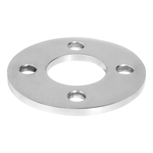 La base está destinada al montaje de postes de barandillas de acero inoxidable interiores y exteriores. Se fija al suelo mediante cuatro tornillos a través de orificios fi 11 mm, y posteriormente el poste tubular se suelda a ella. De este modo se obtiene una unión duradera y rígida que garantiza la máxima capacidad de carga de la estructura. Elemento base ideal para equipos de montaje profesionales que realizan sistemas de barandillas de acero inoxidable.