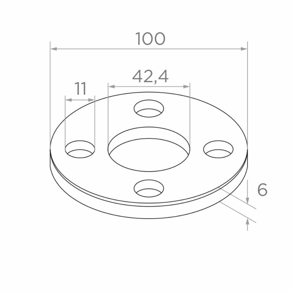 La base de poste de barandilla es una fijación circular diseñada para soldar el poste al suelo. El elemento estructural garantiza estabilidad y resistencia de toda la estructura de barandilla de acero inoxidable. Fabricada en acero inoxidable AISI 304 con acabado satinado, garantiza alta resistencia a la corrosión y un aspecto estético y uniforme en combinación con los demás componentes del sistema de barandilla 42,4 mm.