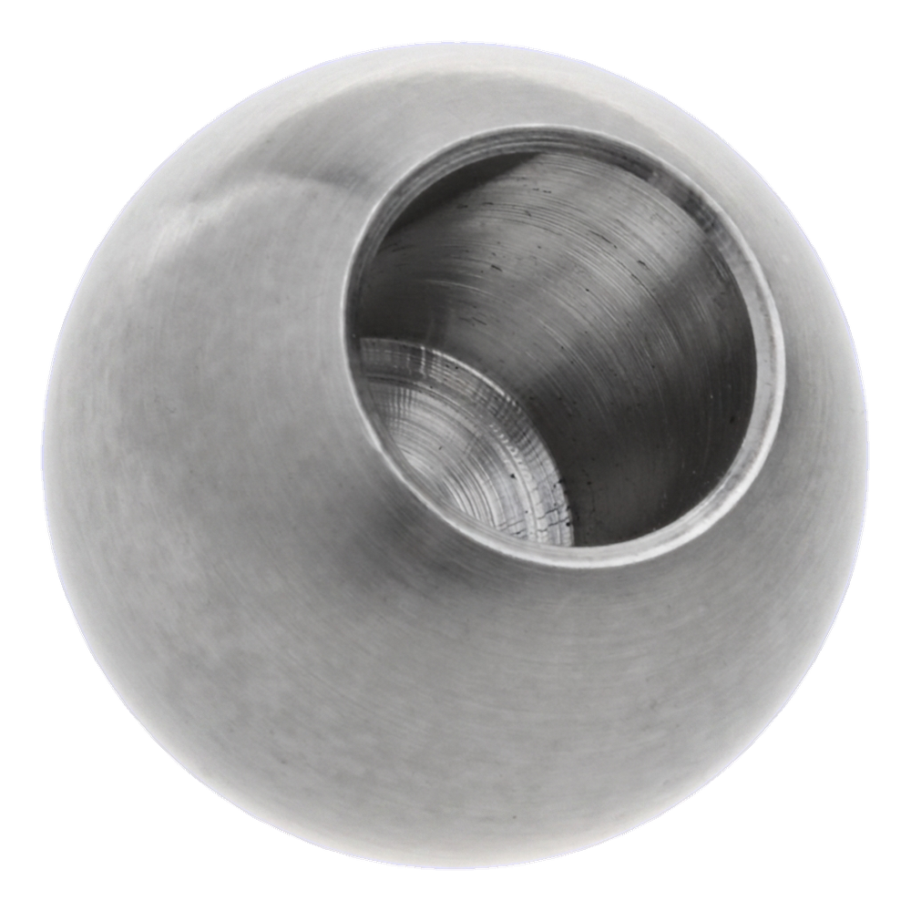 La bola cumple una doble función: cubre los bordes afilados de tubos y barras, eliminando elementos potencialmente peligrosos de la barandilla, y al mismo tiempo protege los orificios contra suciedad y humedad. El orificio ciego de 10 mm de diámetro permite un asentamiento seguro en la barra o tubo mediante pegamento anaeróbico, garantizando una conexión duradera y estética sin elementos de fijación visibles.