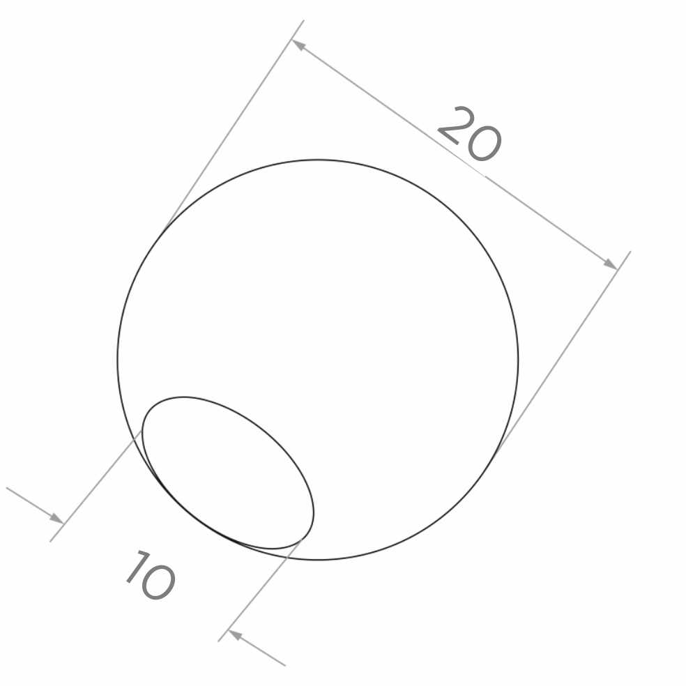 Bola adhesiva para barandilla fi 20 mm, orificio fi 10 mm, acero inoxidable AISI 304 satinado