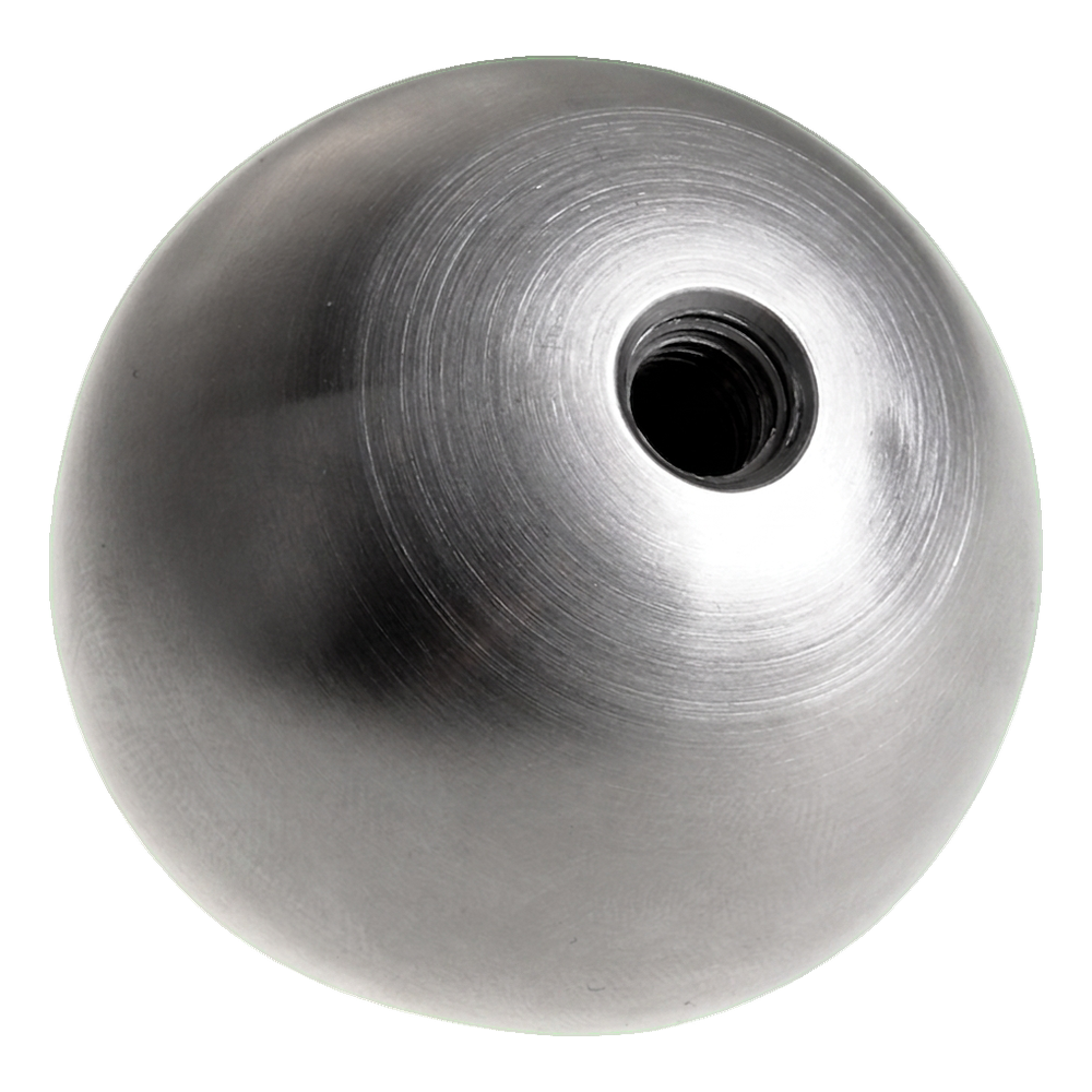 La bola posee orificio ciego con rosca M6, lo que permite un roscado rápido y seguro en varilla o espárrago roscado. El montaje no requiere soldadura ni herramientas especializadas — basta con roscar el elemento, asegurando opcionalmente la unión con adhesivo para metales. Es una solución ideal para equipos de montaje que valoran la rapidez de ejecución y la calidad repetible del acabado.