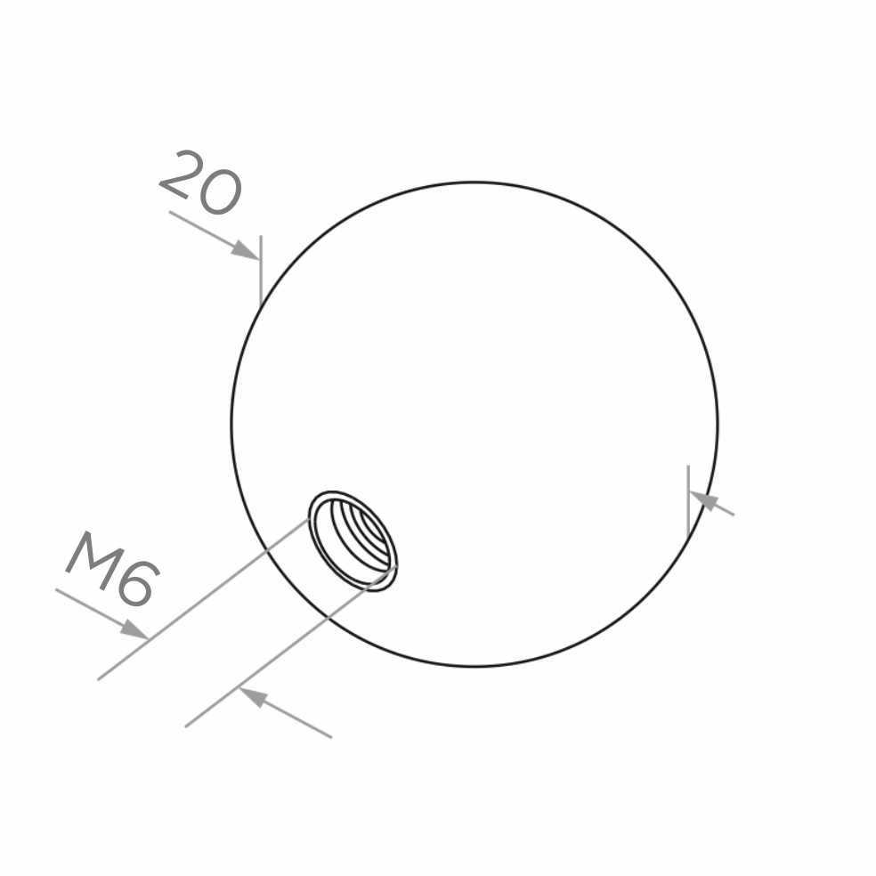 Bola de balaustrada roscada maciza ø 20 mm, rosca M6, acero inoxidable satinado