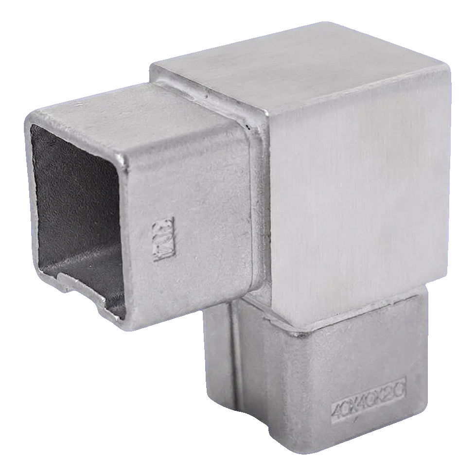 Codo 90° para perfil de barandilla 40x40 mm – acero inoxidable AISI304, satinado