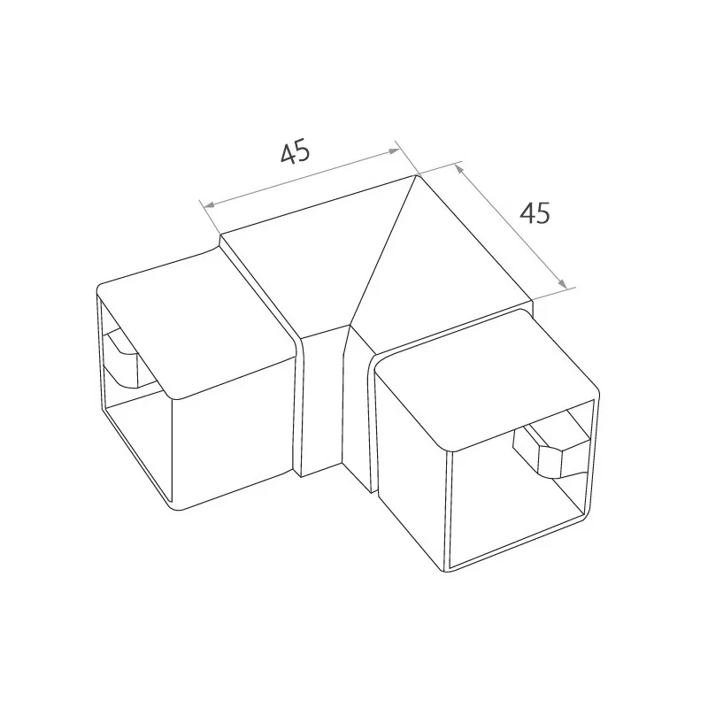 Codo 90° es un conector esquinero de precisión destinado a la construcción de barandillas de cristal en el sistema de perfiles cuadrados 40x40 mm. Fabricado en acero inoxidable AISI304 con acabado satinado de la superficie, garantiza una unión estética y duradera de dos perfiles en ángulo recto. Gracias al montaje pegado (encolado en el perfil) se obtiene una unión invisible y limpia sin tornillos ni orificios de montaje, solución ideal para barandillas de cristal modernas en objetos comerciales y residenciales.