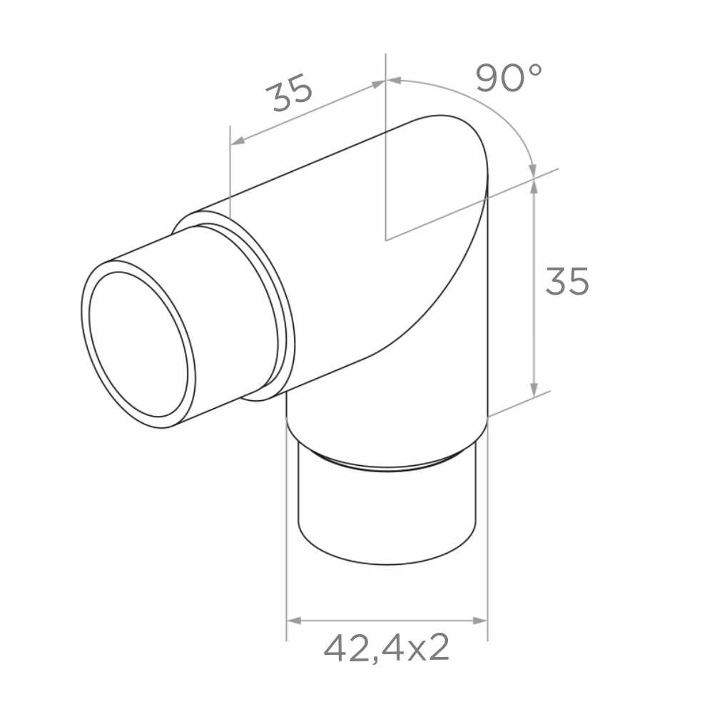 El codo está destinado a la conexión de tramos de tubo en sistemas de barandillas inoxidables en todos aquellos lugares donde se requiere un cambio de dirección del pasamanos de 90° — por ejemplo, en esquinas de balcones, escaleras o terrazas. Los brazos de 35 mm de longitud a cada lado proporcionan suficiente superficie de pegado para una unión duradera. El elemento se encola en el interior del tubo de diámetro ⌀42,4×2 mm, lo que garantiza una transición lisa, sin escalones y un efecto final profesional.