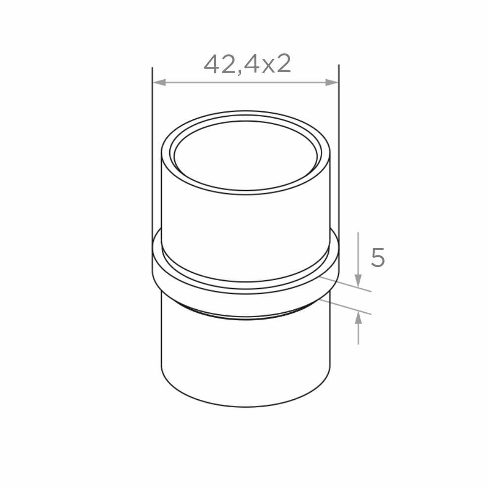 El conector está destinado a la construcción de barandillas de acero inoxidable — pasamanos de balcones, terrazas y escaleras. Se adapta perfectamente donde se requiere una extensión recta y lineal del pasamanos sin cambio de dirección. Compatible con el sistema completo de barandillas basado en tubo Ø 42,4 mm.