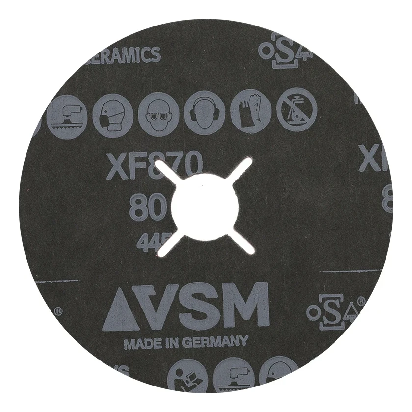 Los discos de fibra cerámicos de la serie XF870 son ideales para el mecanizado de acero estructural, acero inoxidable (INOX) y otros metales y aleaciones. Gracias al grano cerámico autoafilante, el disco mantiene un alto rendimiento de lijado durante toda su vida útil, significativamente más tiempo que los discos clásicos de óxido de aluminio o circonio.