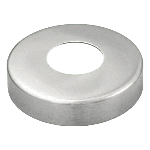 El embellecedor está fabricado en acero inoxidable AISI 304 con acabado satinado (pulido), lo que garantiza alta resistencia a la corrosión y coherencia visual con los demás elementos de la barandilla. El espesor de pared 1,5 mm asegura la rigidez y durabilidad adecuadas del elemento, así como facilidad de montaje — el embellecedor se coloca directamente sobre el tubo y se presiona contra la superficie de montaje.