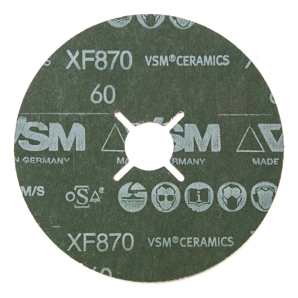 El disco fibra PFERD XF870 CERAMICS es un abrasivo profesional con grano cerámico destinado al rectificado agresivo y al mismo tiempo frío de todos los tipos de acero. El soporte flexible de fibra garantiza una excelente adaptación a superficies planas y convexas, y el recubrimiento refrigerante activo evacúa eficazmente el calor, lo que se traduce en una mayor vida útil del disco y mayor comodidad de trabajo del instalador.