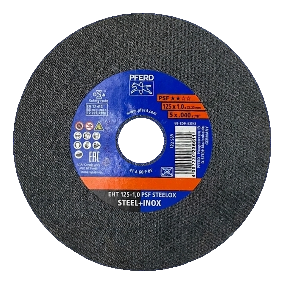 PFERD EHT 125-1.0 PSF STEELOX – disco de corte para acero e INOX 125 × 1,0 mm - paquete de 25 unidades