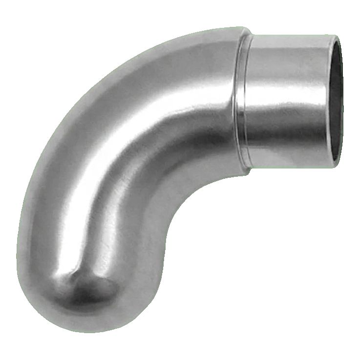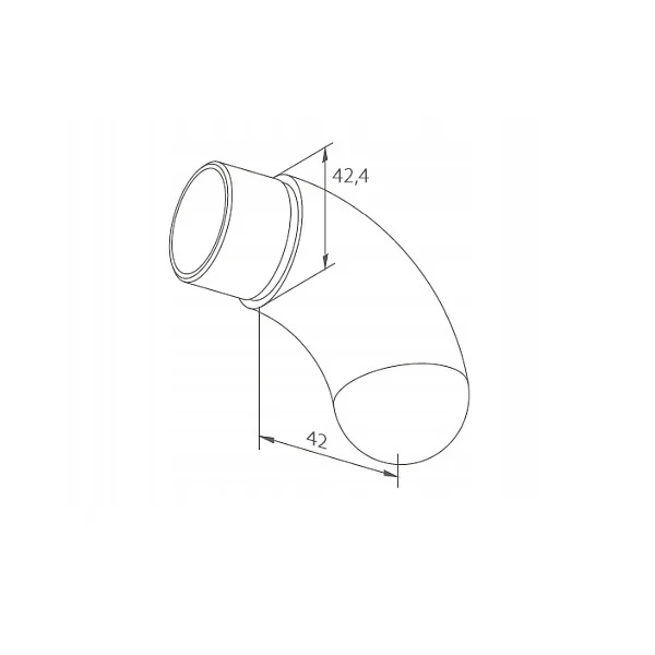 Terminación de pasamanos PINOX en forma de codo cerrado, redondo — elemento de acabado elegante para sistemas de barandillas basados en tubo Ø 42,4 mm. El codo enmascara el borde afilado del tubo cortado, dando al pasamanos un aspecto profesional y redondeado. Fabricado en acero inoxidable AISI 304 con acabado satinado, que garantiza alta resistencia a la corrosión y un brillo mate estético.