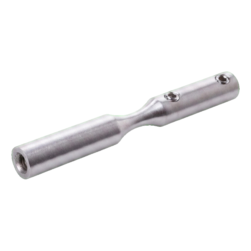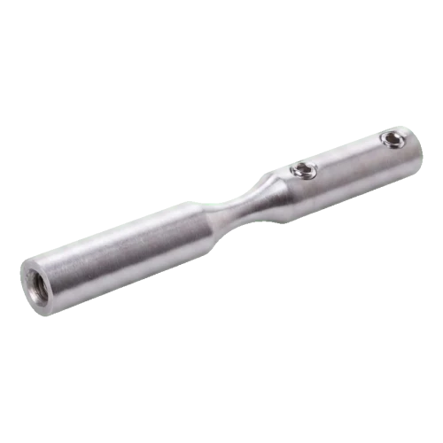 Elemento fabricado en acero inoxidable AISI 304 con acabado satinado asegura alta resistencia a la corrosión y aspecto estético y elegante. El montaje se realiza por atornillado — el soporte está equipado con roscas M6 y orificios de bloqueo (Ø6 mm), lo que garantiza una conexión estable y duradera con el cable y la estructura portante.