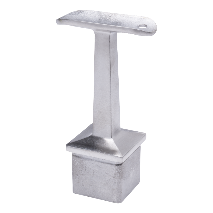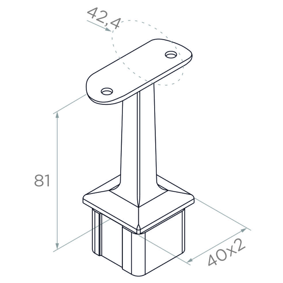 El soporte de pasamanos PSG es un conector fabricado con precisión de acero inoxidable AISI 304 con acabado satinado, diseñado para conectar un poste cuadrado de 40×40 mm con un pasamanos de diámetro 42,4 mm. Elemento montado mediante pegado anaeróbico — garantiza una unión duradera, estética e invisible sin soldadura, lo que acelera significativamente el montaje de la barandilla en obra.