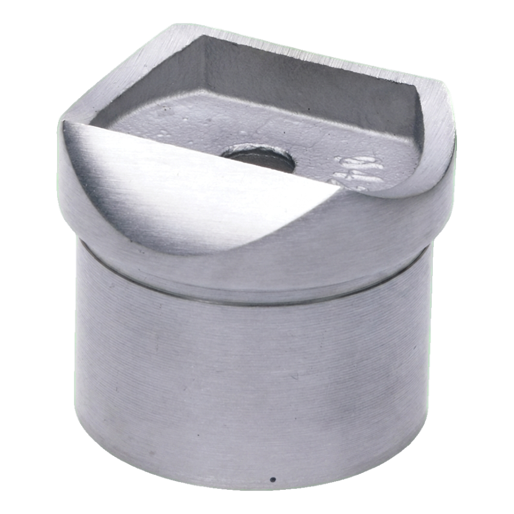 Soporte de pasamanos transversal destinado al sistema de barandillas de diámetro 42,4 mm. Sirve como sujeción del pasamanos montada directamente en el poste — garantiza una conexión estable y estética del tubo del pasamanos con el poste portante. Producto destinado al montaje encolado mediante pegamento anaeróbico, lo que garantiza una conexión duradera e invisible sin soldadura ni tornillos.