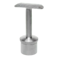 La silla del soporte (placa de montaje superior) está perfilada para pasamanos de diámetro 42,4 mm y posee dos orificios de montaje que permiten atornillar adicionalmente el pasamanos. La forma de la silla asegura un contacto uniforme con el tubo del pasamanos en toda la longitud de contacto.