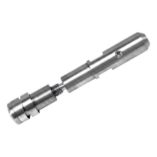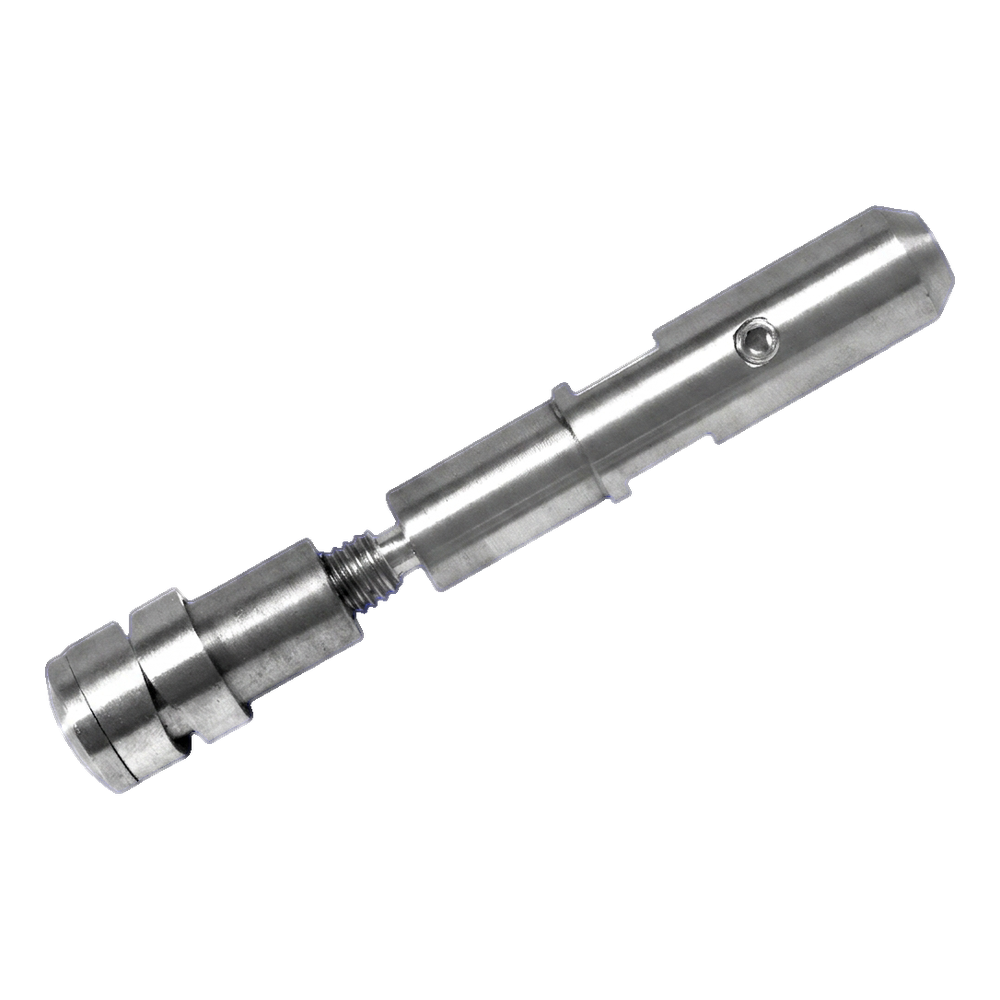 Fabricado en acero inoxidable AISI 304 con acabado satinado, garantiza alta resistencia a la corrosión y una apariencia estética y moderna de la barandilla terminada. La construcción de dos piezas con rosca central facilita el posicionamiento preciso y ajuste durante la instalación.