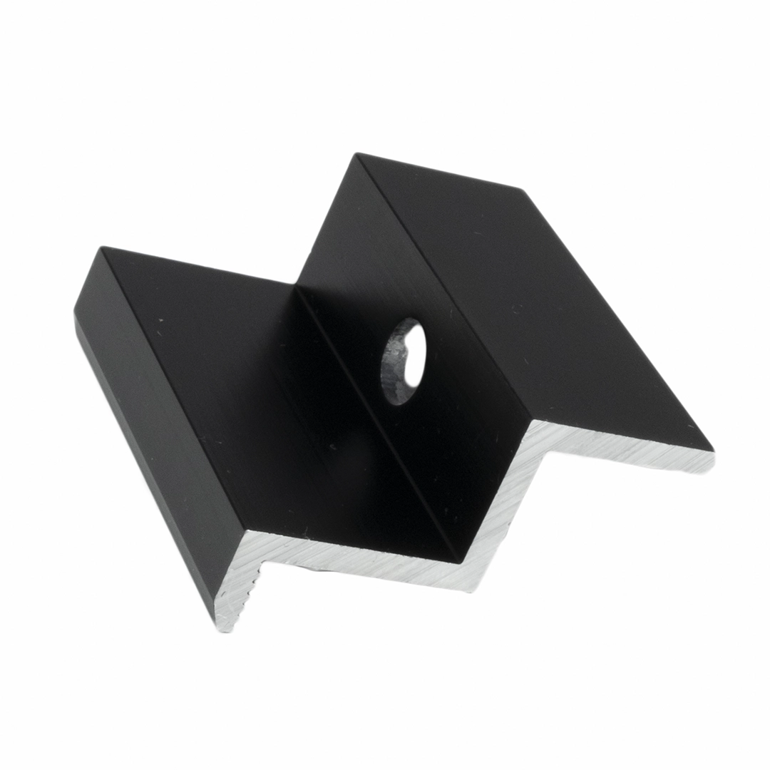 La abrazadera de presión o sujeción lateral es un elemento de fijación importante para la instalación de módulos solares y sirve para fijar el módulo solar al perfil de aluminio. Se utiliza para montar módulos solares en techos planos e inclinados.