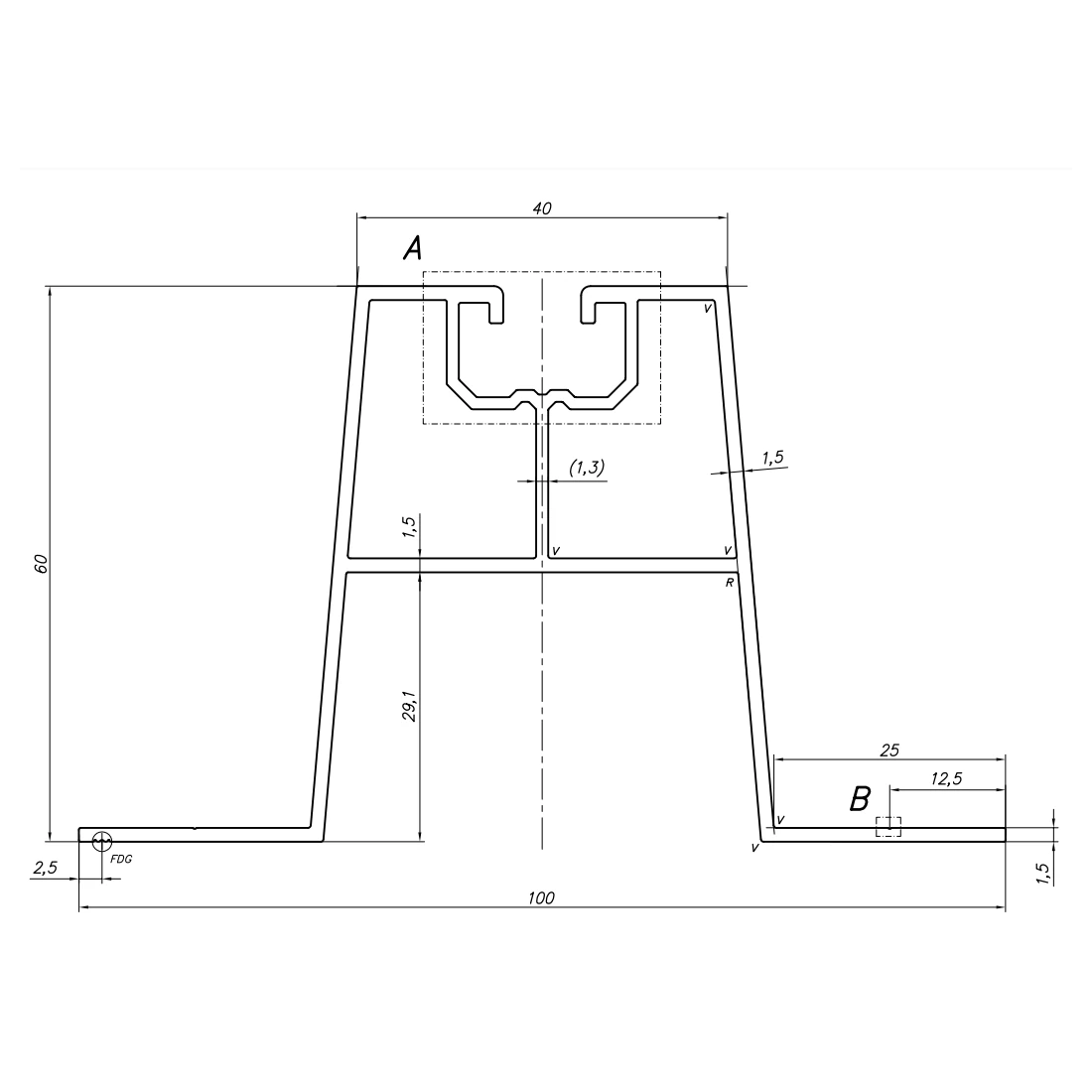 El perfil trapezoidal de aluminio o también llamado puente trapezoidal permite la fijación directa de paneles a chapas trapezoidales. Es adecuado para fijar paneles fotovoltaicos con abrazaderas centrales y finales. Las abrazaderas se fijan al canal superior del carril de montaje mediante una ranura deslizante, un inserto roscado o un perno mlot. El raíl de 60 mm de altura proporciona un flujo de aire libre bajo el panel, lo que permite una refrigeración natural y la separación del panel de la superficie del tejado calefactada.