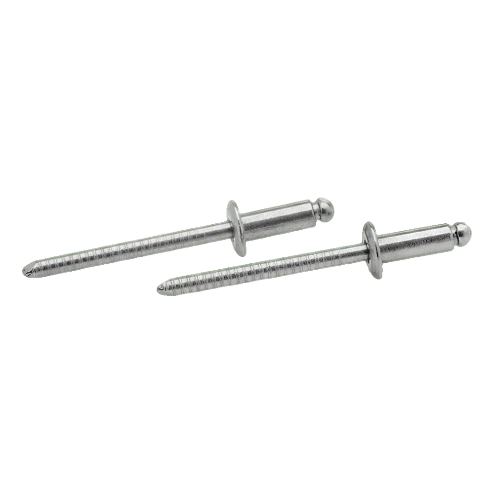 La superficie ranurada del vástago asegura un asentamiento seguro en la remachadora y un proceso de remachado estable. Gracias al uso de acero inoxidable austenítico AISI 304, el remache se caracteriza por su alta resistencia a la corrosión, lo que permite su uso tanto en interiores como en exteriores — sin riesgo de formación de óxido y decoloración en los elementos unidos.