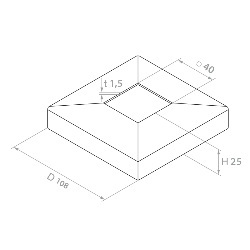 Roseta cubreobjetos cuadrada destinada a postes de barandilla con sección 40×40 mm. Fabricada en acero inoxidable AISI 316 con acabado satinado, garantiza una cobertura elegante y duradera de los puntos de montaje, bases de perfiles y orificios tecnológicos. Gracias al empleo de acero grado 316, la cubreobjetos garantiza alta resistencia a la corrosión — también en ambientes expuestos al contacto con humedad y sal, lo que la convierte en una solución ideal tanto para interiores como para exteriores de edificios.