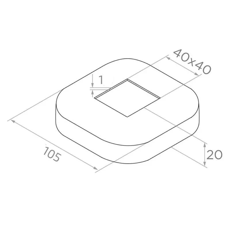 Roseta de cubrición 105×105 mm es un elemento de acabado cuadrado diseñado para cubrir orificios de montaje alrededor de perfiles 40×40 mm en barandillas y estructuras de acero inoxidable. Gracias al ajuste preciso al perfil cuadrado, enmascara eficazmente los puntos de paso del poste a través del elemento portante, proporcionando a la barandilla un aspecto profesional y limpio.