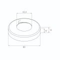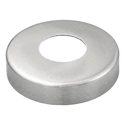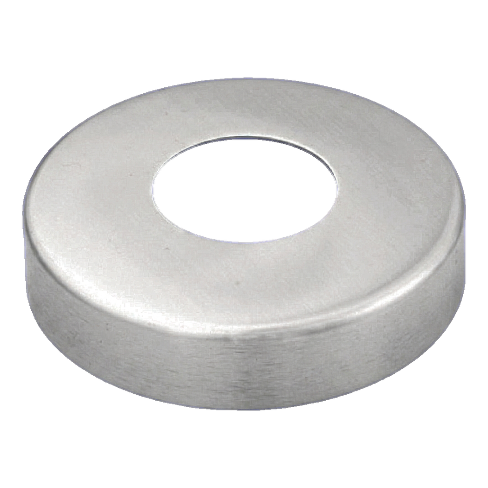 Roseta de enmascaramiento (embellecedor) de acero inoxidable AISI 304 diseñada para cubrir estéticamente los orificios de montaje alrededor de tubos de 42,4 mm de diámetro en barandillas y estructuras inoxidables. El acabado satinado de la superficie proporciona un aspecto elegante y discreto, al tiempo que enmascara eficazmente las imperfecciones del punto de paso del poste a través del elemento portante.