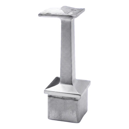 El soporte está dedicado a conexiones angulares de barandillas con postes cuadrados en el sistema 40×40 mm. Es ideal para balaustradas interiores y exteriores — en escaleras, terrazas, balcones y entrepisos. El acabado satinado del acero inoxidable amplía ópticamente el espacio, proporciona iluminación natural y se compone armoniosamente con decoraciones modernas.