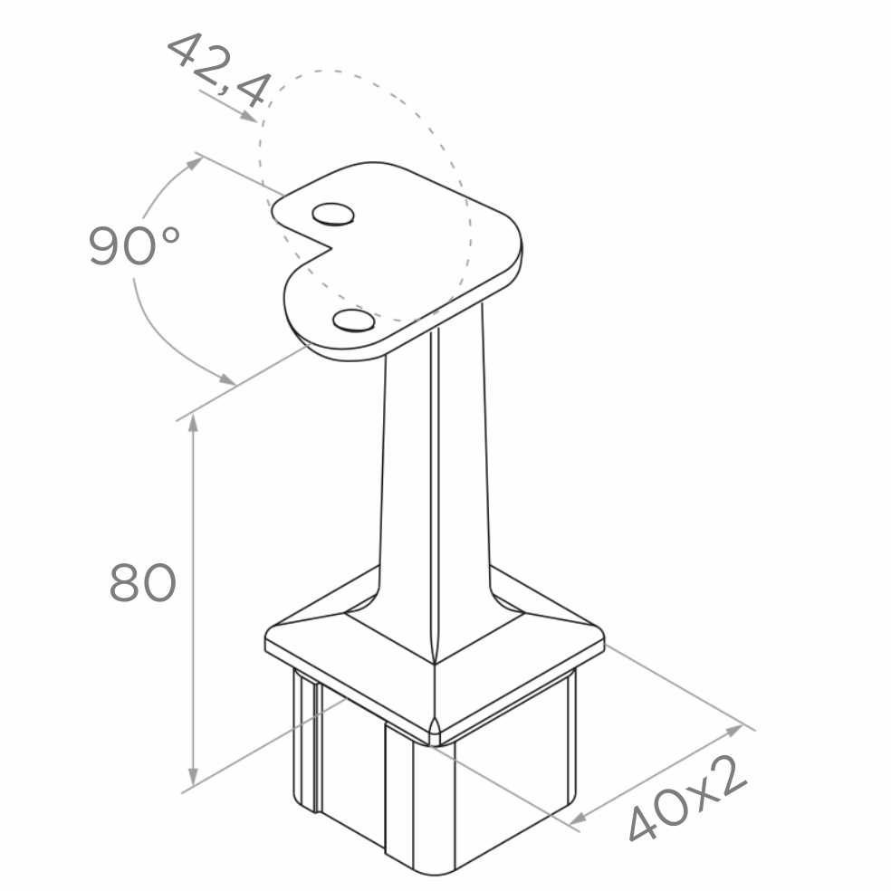 Soporte de barandilla angular 42,4 mm para poste 40x40 mm – acero inoxidable AISI 304 satinado