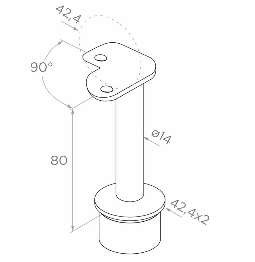 El soporte de pasamanos angular PSG es un elemento fijo de construcción de balaustradas encolado, destinado al montaje en poste 42,4 × 2 mm. Gracias a la conexión rígida proporciona un apoyo duradero y estable del pasamanos en ángulo 90° — solución ideal para esquinas de balaustradas, escaleras y galerías. El producto se monta mediante pegamento anaeróbico, lo que garantiza una conexión fiable e inseparable sin necesidad de soldadura en obra.