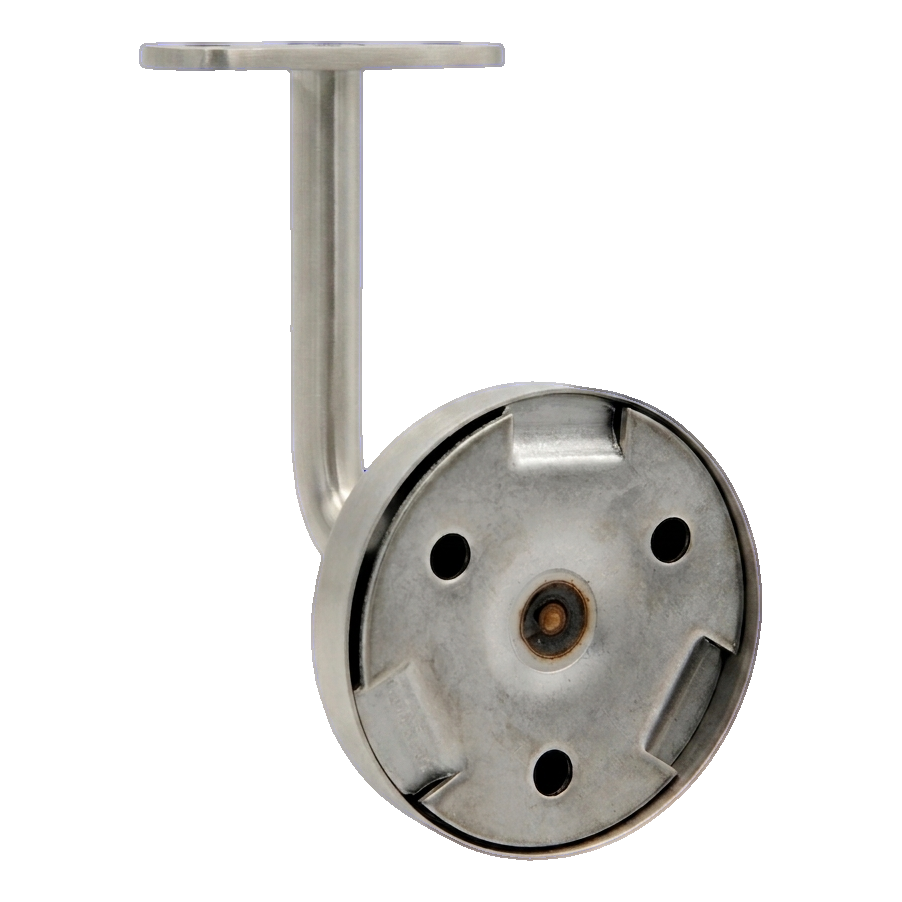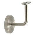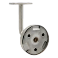 Soporte de pasamanos plano con embellecedor de acero inoxidable AISI 304 destinado al montaje en pared. El producto combina la durabilidad del material con un elegante acabado satinado — perfecto para ambientaciones modernas de escaleras, barandillas y pasamanos en edificios de uso público, oficinas y edificios residenciales.