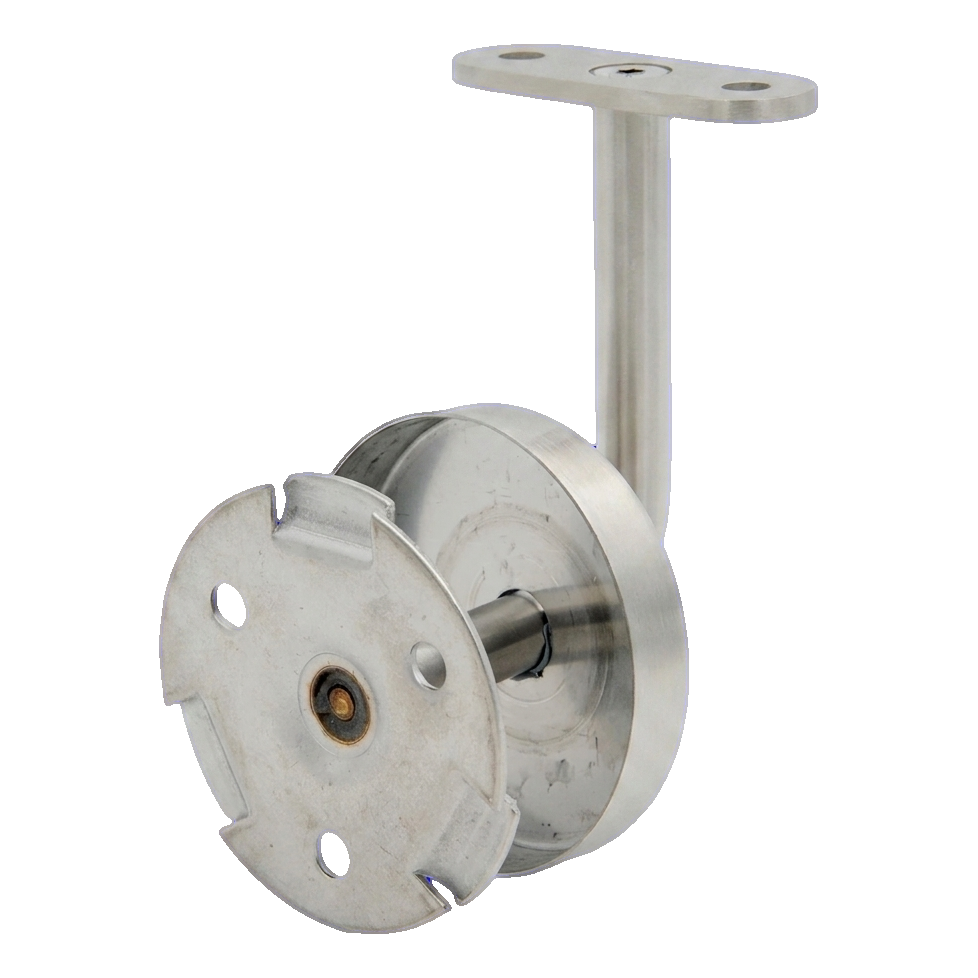 Los tres orificios de montaje en la placa de pared aseguran un montaje rápido y preciso. La chapa de fijación del pasamanos (montura) permite el asentamiento seguro de pasamanos de sección plana. El embellecedor de pared se coloca sobre la placa, cubriendo los puntos de fijación y dando a la instalación un aspecto profesional.