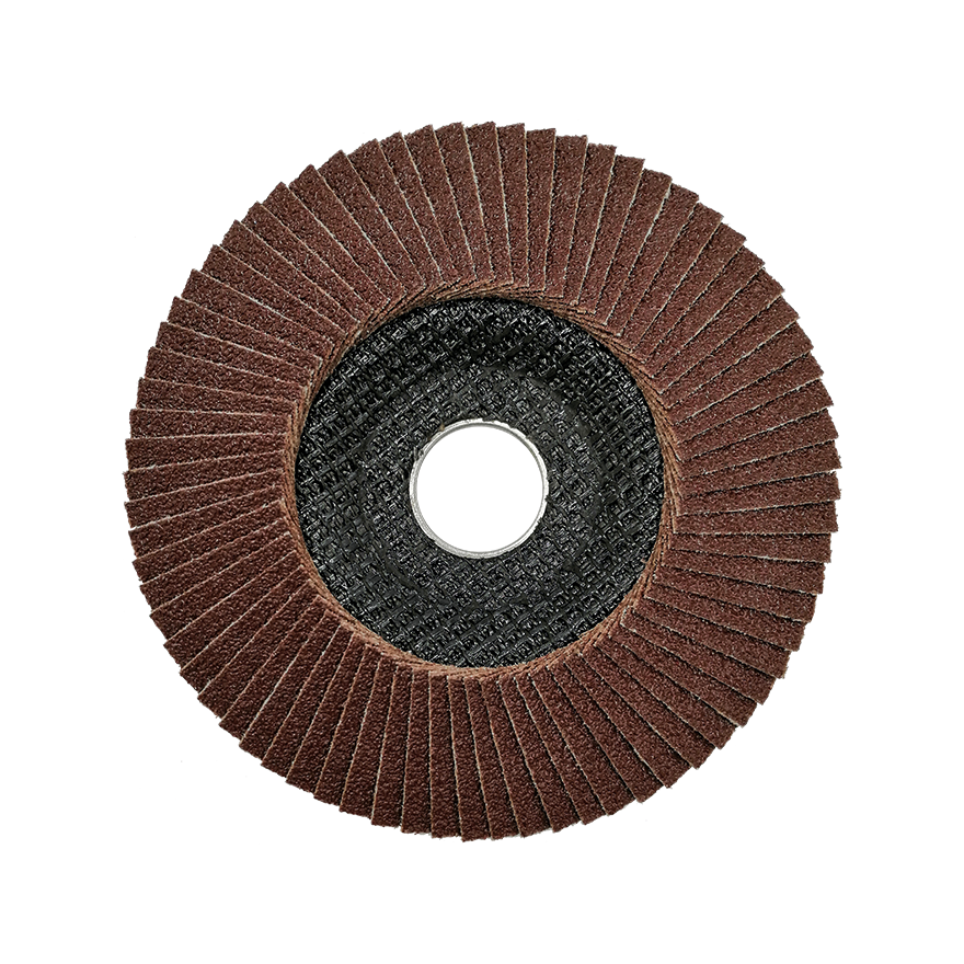 Los discos laminares se presentan en dos diseños. La versión curvada (T29) — designada como TLI / TLS — tiene una superficie de contacto más estrecha con el material mecanizado. Esto aumenta la presión de lijado en un área menor, lo que acelera la eliminación de material. El ángulo óptimo de trabajo es 10°–25°. Es la variante ideal para biselado de bordes, eliminación de soldaduras y trabajo en esquinas.