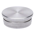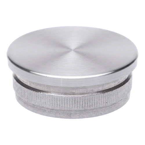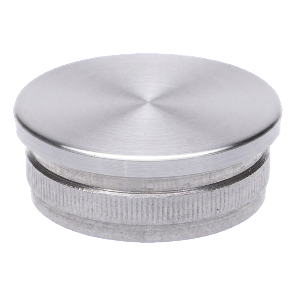 El tapón se monta mediante la introducción de la parte de asentamiento moleteada en el interior del tubo. El moleteado asegura un asentamiento duradero y firme sin posibilidad de caída accidental. Elemento dedicado al sistema de barandilla basado en tubos Ø 48,3 mm — uno de los estándares más utilizados en barandillas de acero inoxidable. Se adapta perfectamente como acabado de pasamanos superior, postes verticales y otros elementos estructurales de barandillas interiores y exteriores.