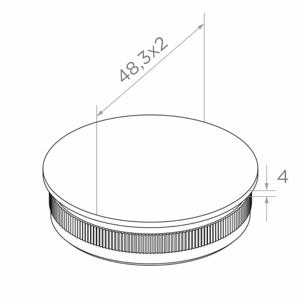 Tapón convexo para introducir para tubos redondos de diámetro 48,3 × 2 mm — elemento de acabado estético destinado al cierre de extremos de pasamanos y postes de barandillas. Gracias a la parte de asentamiento moleteada, el montaje se realiza mediante introducción — sin herramientas adicionales, pegamentos ni soldadura. El tapón proporciona un cierre limpio y seguro del perfil, eliminando bordes afilados y protegiendo el interior del tubo contra suciedad y humedad.